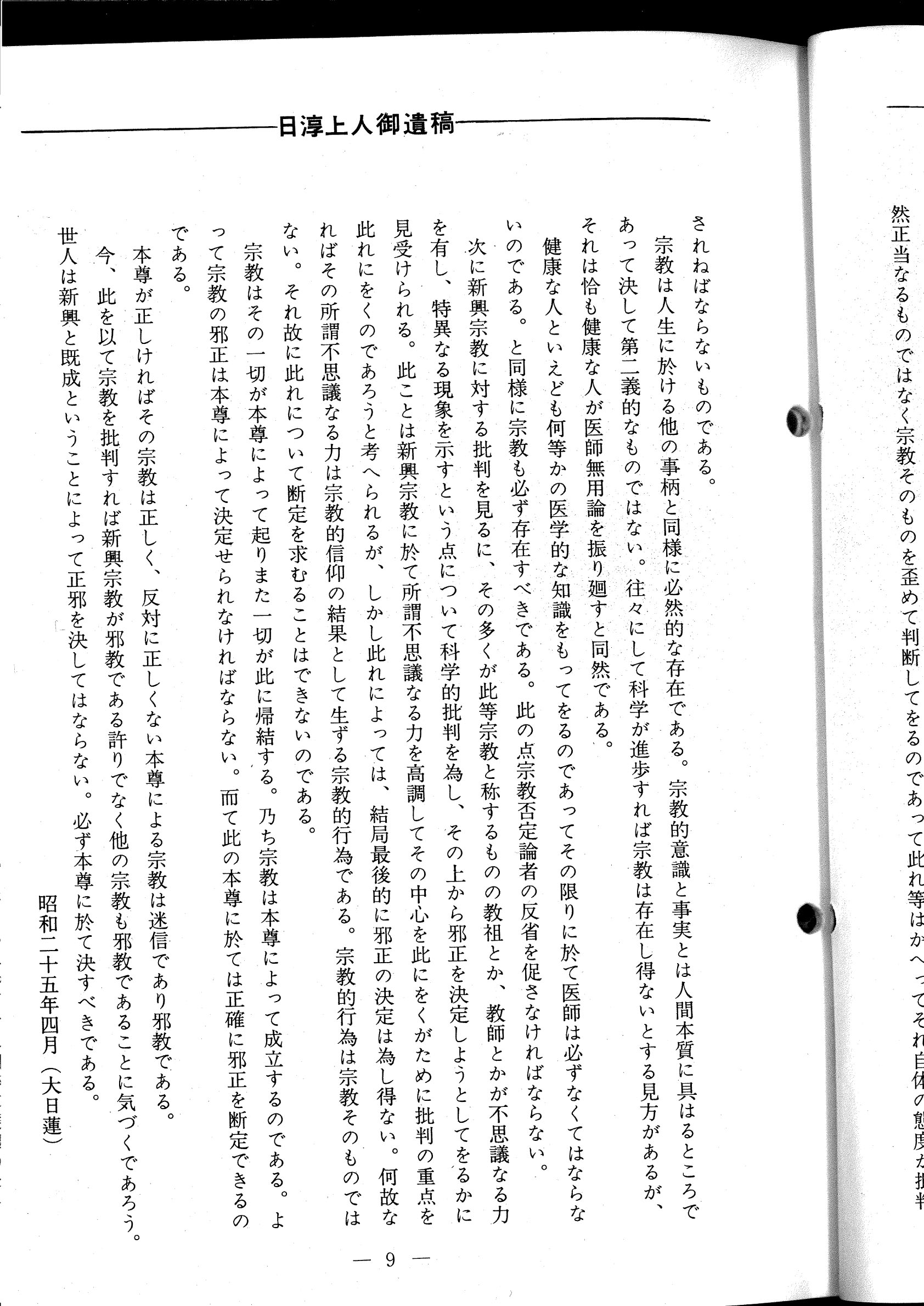 世人は新興と既成ということによつて正邪を決してはならない。必らず本尊に於て決すべきである。