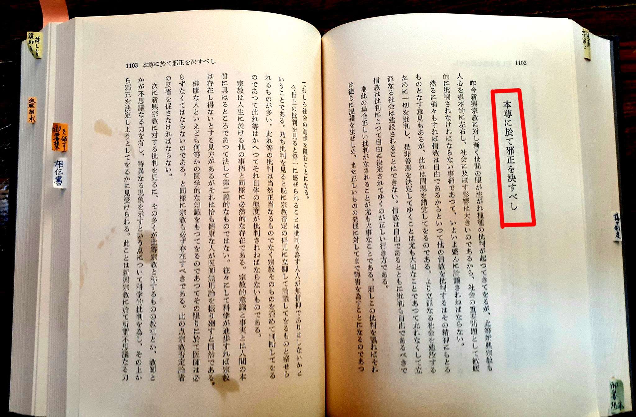 本尊が正しければその宗教は正しく、反対に正しくない本尊による宗教は迷信であり邪教である。