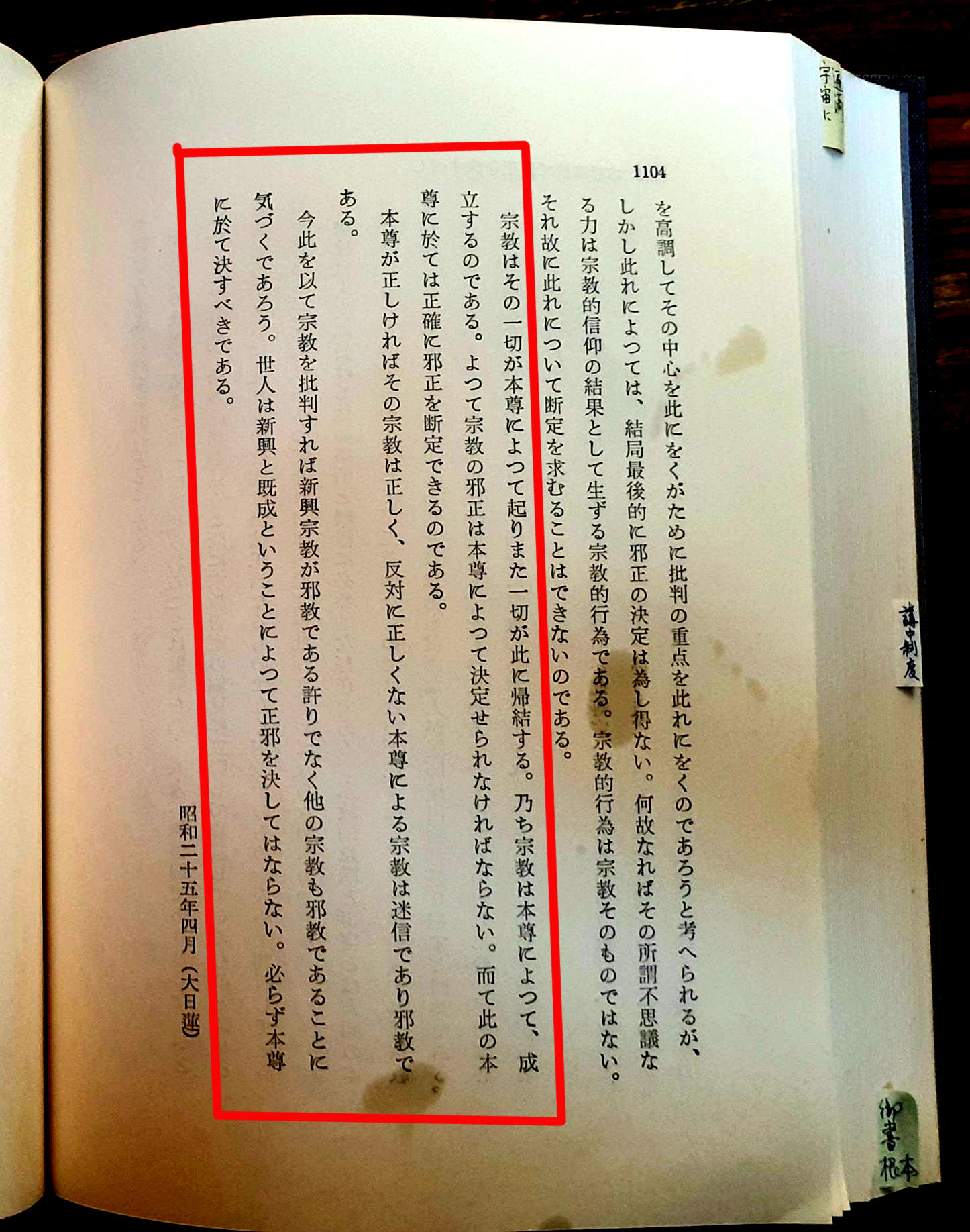 よつて宗教の邪正は本尊によつて決定せられなけらばならない。